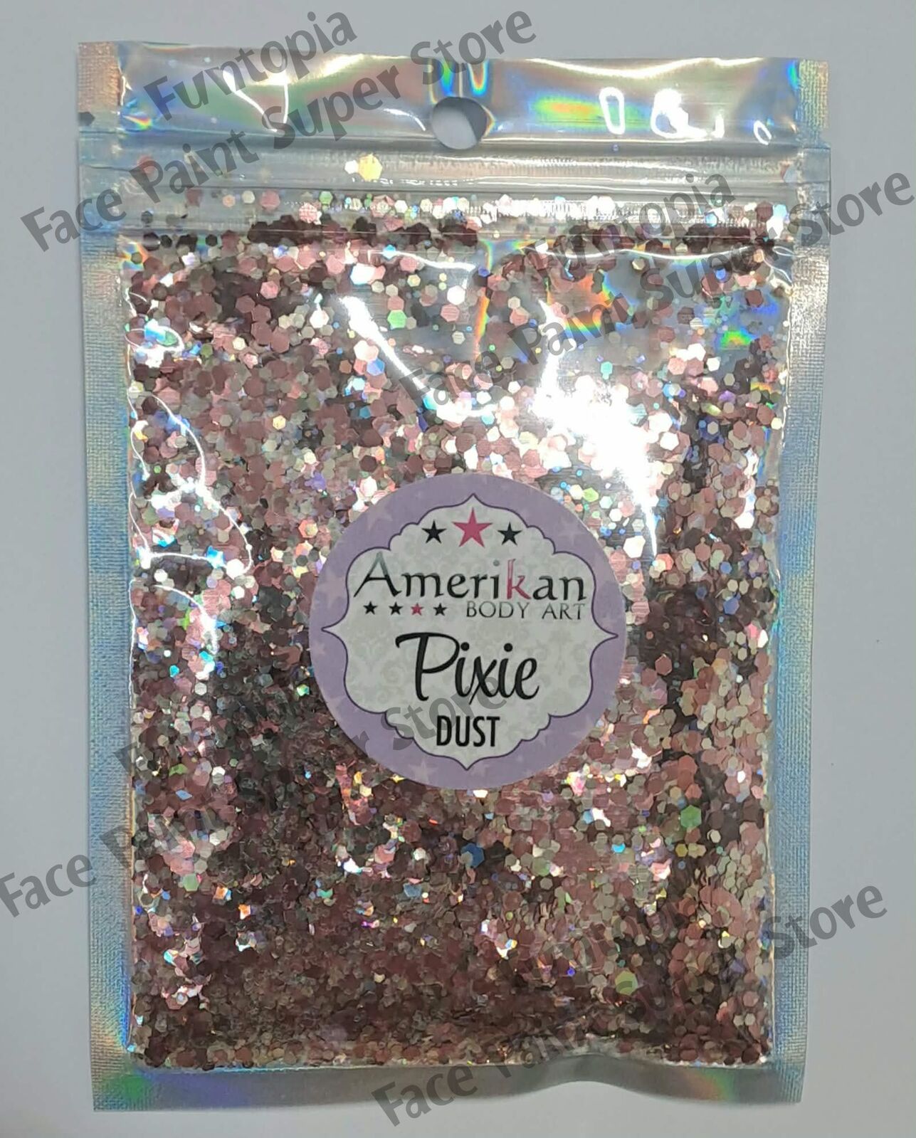 Please use caution when using large glitter particles on the face. It is not recommended to use large glitter particles (of any shape or material) near the eyes.
