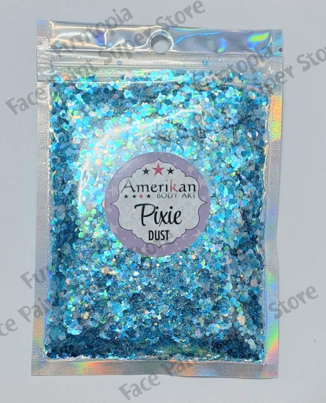 Amerikan Body Art Chunky Glitter Blend - Dry Pixie Dust - Blue Monday - Holographic Blue, Green Mix  - 1oz (approx 28g)