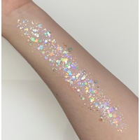 "Winter Wonderland" offers a sweet pastel blended mix of chunky sizes of holographic silver, blue, pink colours. A lovely accent to your makup or face paint design.