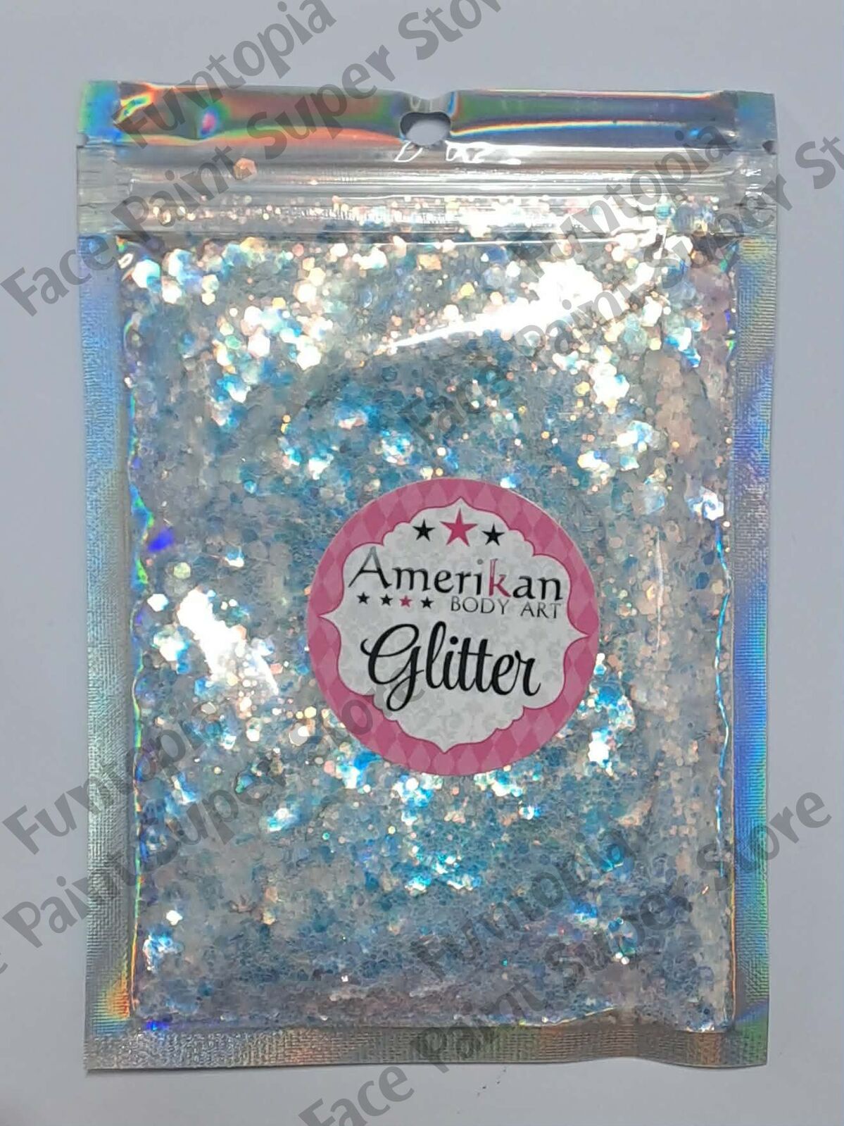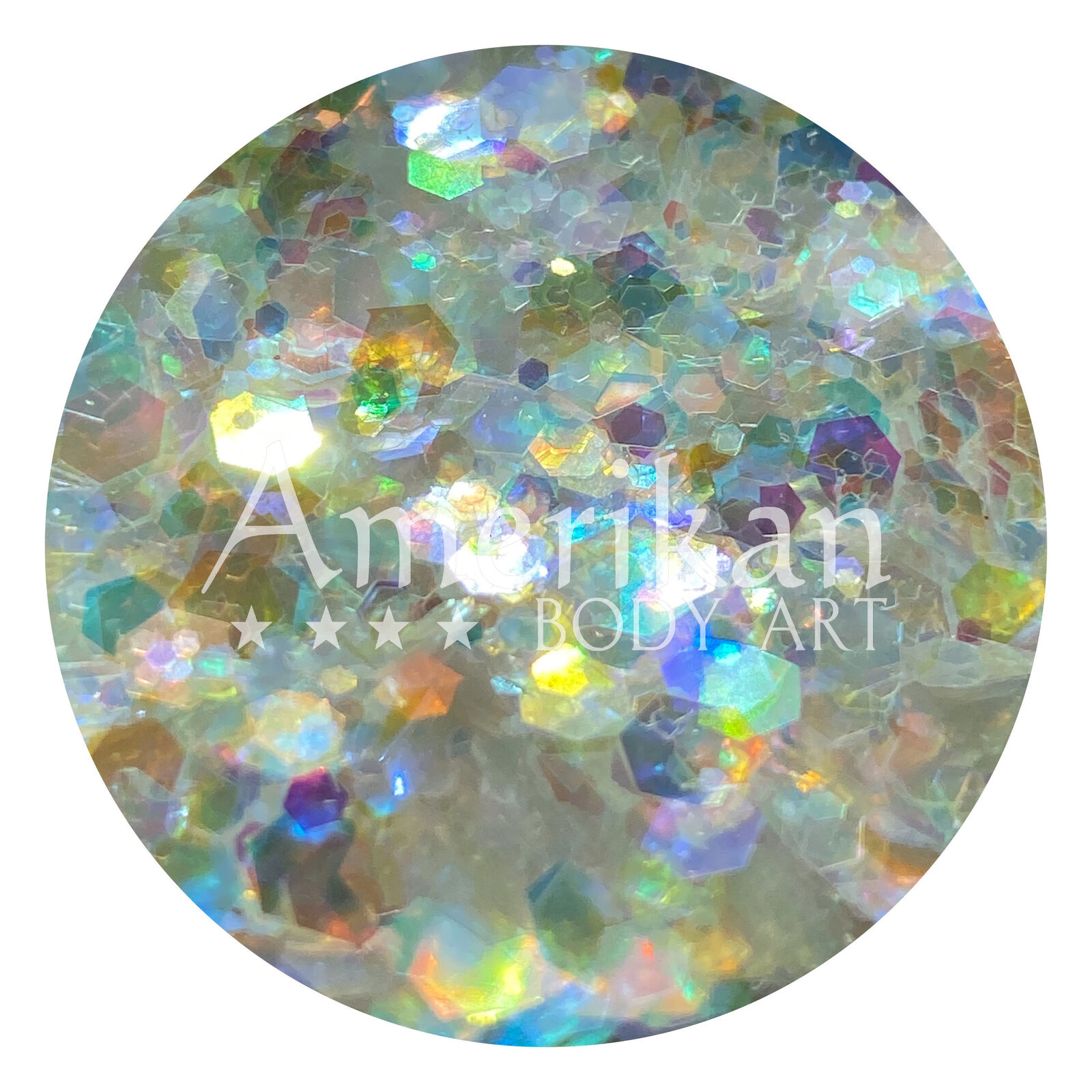 Amerikan Body Art Chunky Glitter Blend - Elemental Fire Chunky Blend - Holographic White with reflective blues - 1oz (approx 28g)