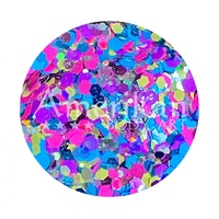 "Felicity" offers a blended mix of chunky sizes of holographic sparkle colours plus blacklight reactive neon pink and purple particles. It looks great in daylight or under blacklight.