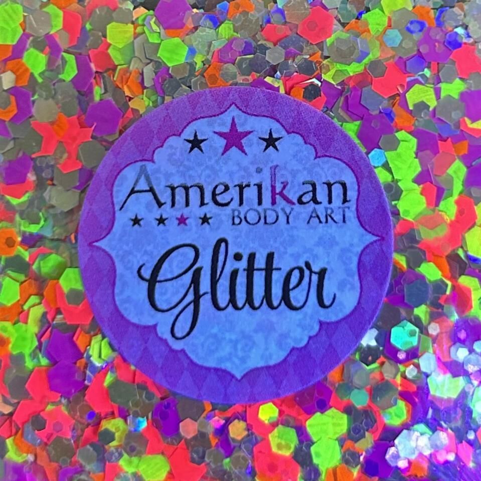 Amerikan Body Art Chunky Glitter Blend - Ultraviolet Neon UV Glow Pink, Yellow, Purple - 1oz (approx 28g)