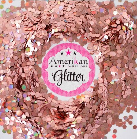 Amerikan Body Art Chunky Glitter - Holographic Rose Gold 0.094" hex - 1oz (approx 28g)
