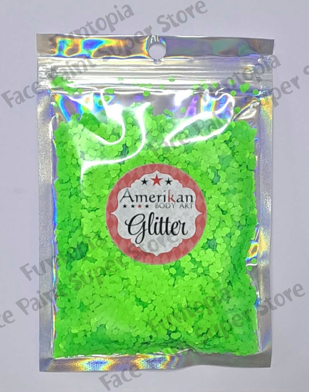 Amerikan Body Art Chunky Glitter - Neon UV Glow Green 0.094 hex - 1oz (approx 28g)