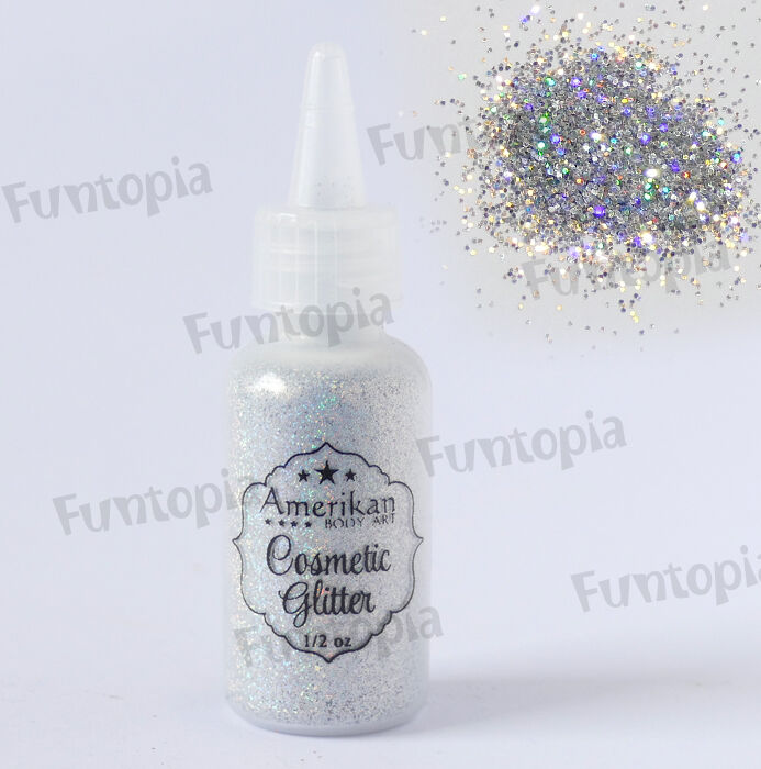 Amerikan Body Art Cosmetic Glitter -  Holographic Silver - 15ml Puffer Bottle (approx 12g)
