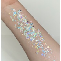 Amerikan Body Art Pixie Paint is a blend of chunky and fine glitters along and aloe glitter gel base. You can paint it on the face, body, and hair. It's perfect for Glitter Roots, cute Pixie-ish accents on the cheeks, and extreme coverage for dance clubs or festival body painting. Pixie Paint tends to stay put all day, with very little fallout, but can be easily washed off with water.