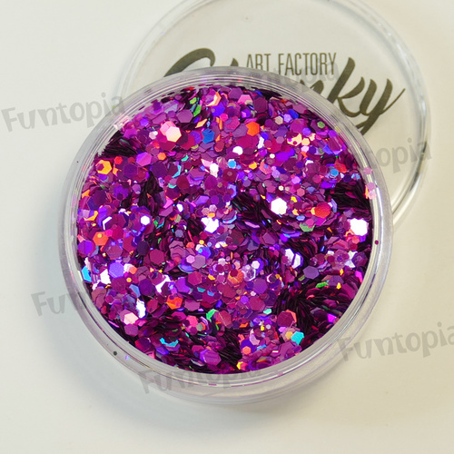 This line of chunky glitter is created using a mix of different holographic colours and shapes to sparkle up any face paint design or can be used by itself as a show stopper!