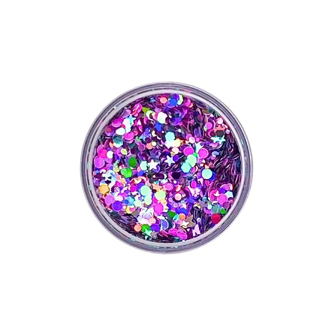 Art Factory's chunky glitters are created using a mix of different holographic colours and shapes to sparkle up any face paint design or can be used by itself as a show stopper!