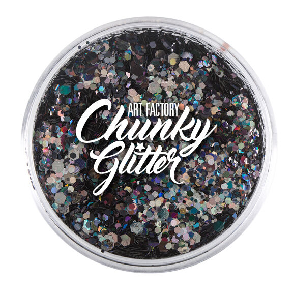 Art Factory's chunky glitters are created using a mix of different holographic colours and shapes to sparkle up any face paint design or can be used by itself as a show stopper!