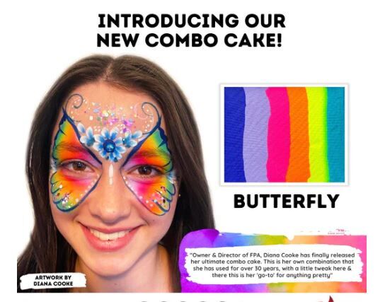 Face Paints Australia FPA Rainbow Cake - 50g Butterfly Combo Horizontal - by Diana Cooke