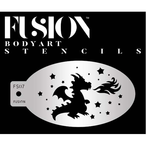 Fusion Body Art Stencil 007 - Mystic Dragon, flames, stars Reusable Stencil
