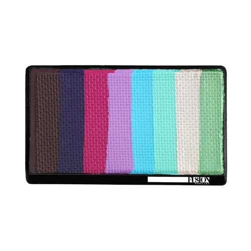 Load a sponge with some or all of the colours in this cake by moving the sponge from side to side, and then tapping the colours just where you want them. You can create amazingly colourful designs with just one cake! Take care using just enough water to activate and load your sponge to get a clean impression.