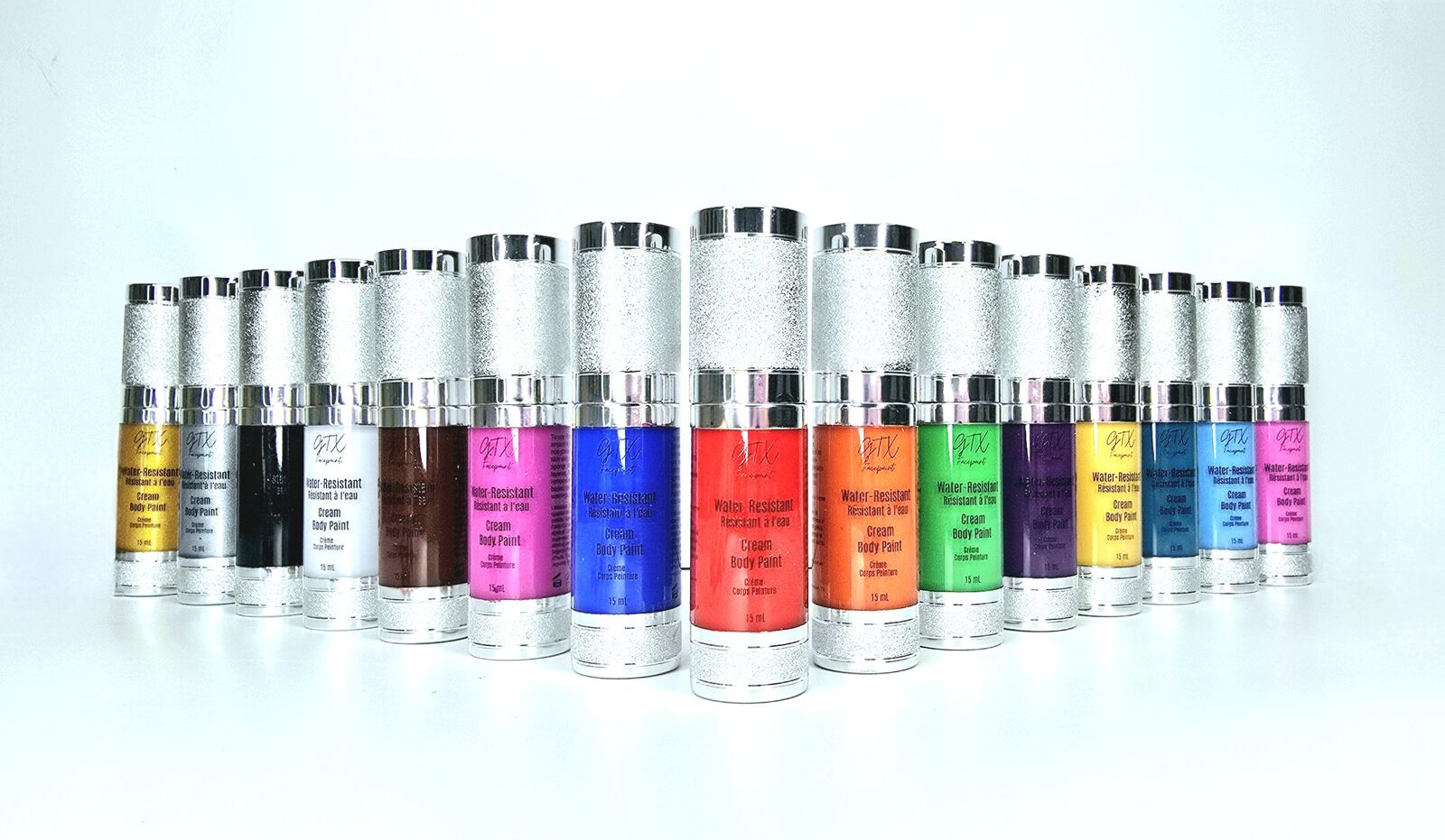 Also available in a full kit of paint makeup, 15 colours at 15ml each. The kit will include all colours and a FREE surprise palette (one of 10 fun designs, engraved with the GTX logo.) This set includes NO NEONS and all ingredients are FDA approved as well as MOCRA registered.