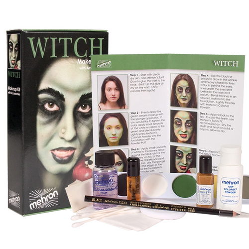 The Witch is the Classic Halloween Character. This easy to use Witch Character Kit will transform even the most dazzling beauty into a wicked witch. Just follow the step-by-step instructions when applying this professional performance makeup and you will become the wicked witch of the East, West, North or South.
