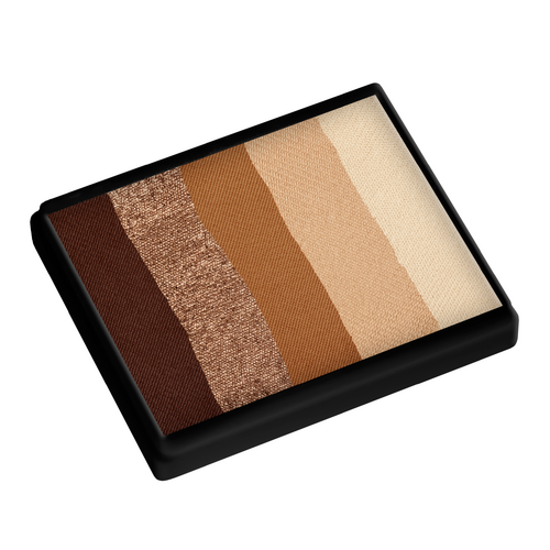 A gorgeous selection of regular browns, skin tone colours with a sliver of pearlescent/ metallic old gold giving you a stunning earthy base. Earthy tones, creatures, tigers, cats woodland designs and more. Sure to be a favourite staple for your face painting kit. Includes regular brown, pearl old gold, regular mid brown, regular beige, regular ivory.